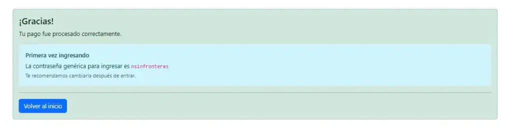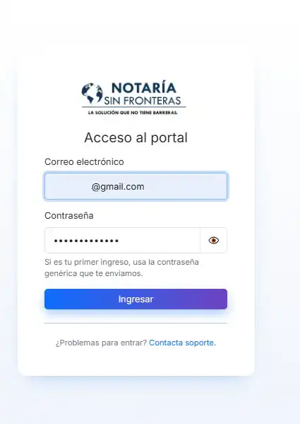 Si es su primera vez, inicie sesión con el correo electrónico registrado en el paso 1 y la contraseña predeterminada: nsinfronteras.